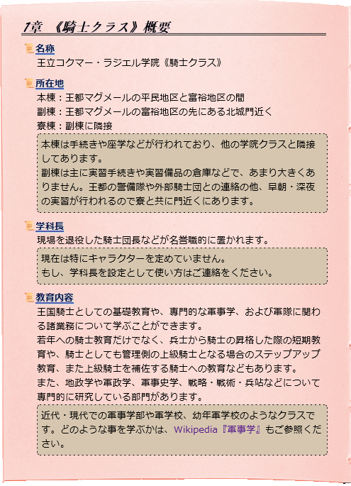 7章3頁 《騎士クラス》追加設定