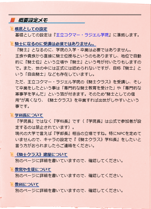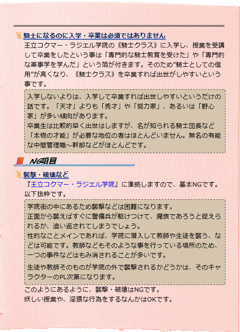 基礎としての設定は『王立コクマー・ラジエル学院』に準拠します。