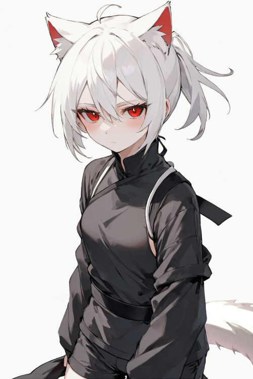 【名前】 篝(かがり) 【年齢】 18 【種族】 ミレー族(猫) 【身長】 153p 【体系】 小柄で華奢だが出るところは出てる。 普段はさらしを巻き、男物のだぶついた服を着ているため体系はわかりにくい。 【外見】 白髪ボブカットをポニーテールにする。赤眼。