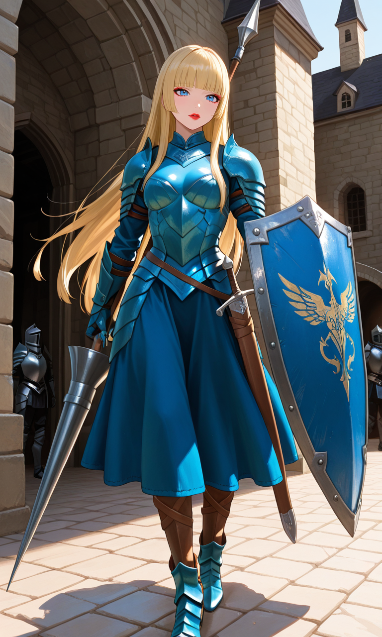 性格:母、ラミスの気質を受け継ぎ、生真面目。口調も断定的。 女性の多い生活をしているが故に、恋愛対象は女性。 高潔な騎士であった、母親の事は尊敬をしており、武術の師として仰いでいる。