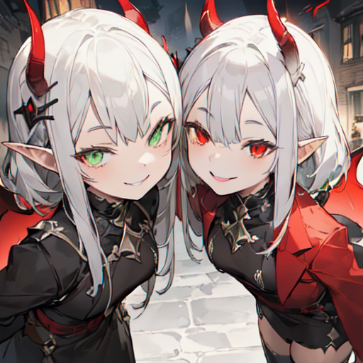 ◆◇◆ 双児宮・八位の双子の女の子悪魔。背中に一対の黒い羽を生やしている 序列の刻印は左腕と右腕 双方ともに長い銀髪で、髪型も含めかなり似通った外見をしている 声質も全く同じだが、ジェイミの方が荒っぽい話し方、アイニーが丁寧な話し方 尚性格はどちらも賢しく、生意気