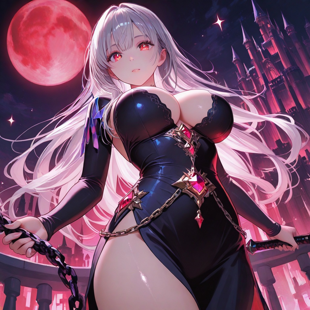 月の光のような白銀のロングストレートの髪 シルクのような白い肌 紅玉のような深い赫で切れ目の瞳 烈情閉じ込めたような紅い唇