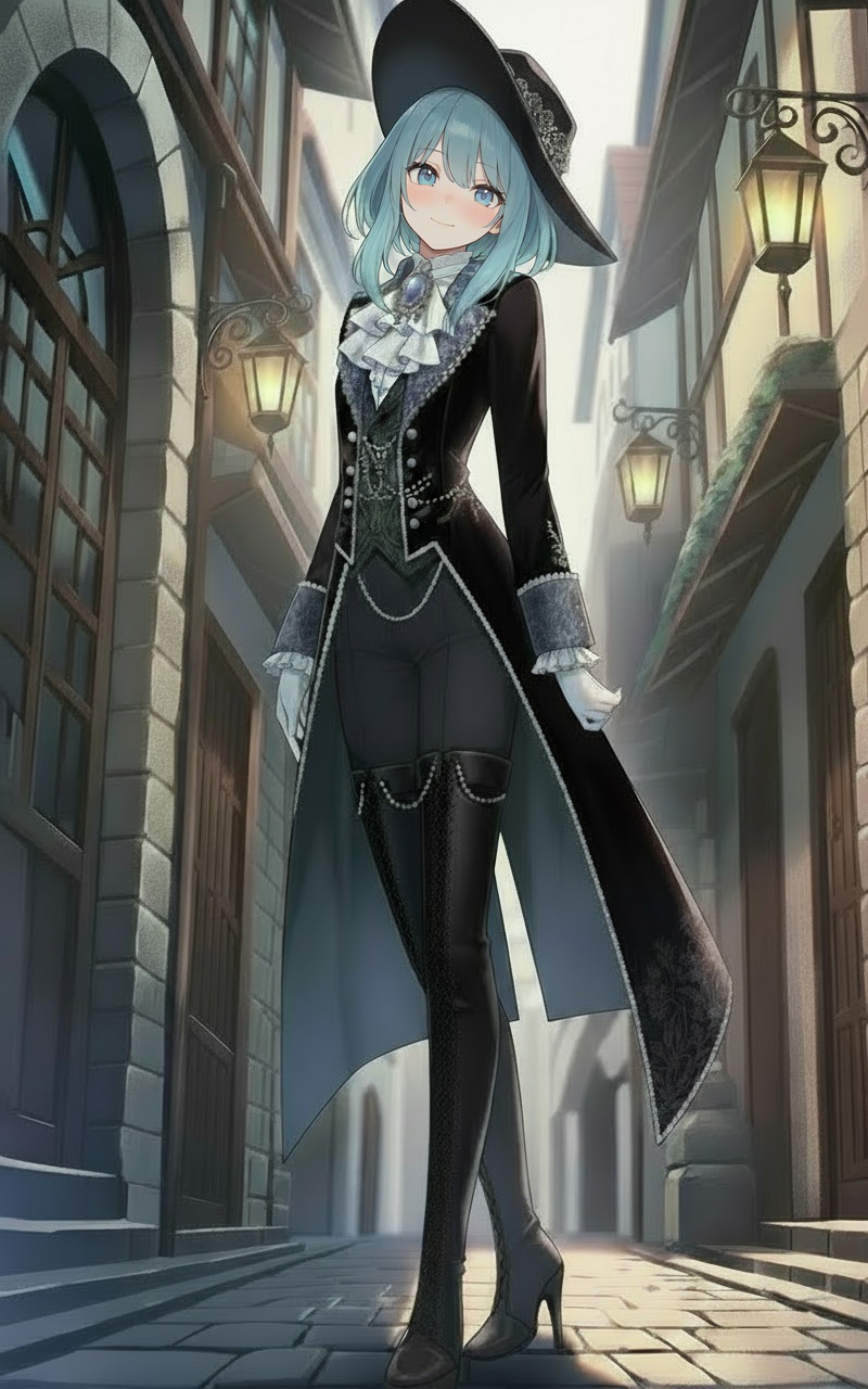服装 黒いトリコーン帽 黒の燕尾服 同色のズボン 革のブーツ 服装を着ている際のイメージ的には、すらりとした男装の麗人。 燕尾服の後ろのお尻の辺りはもっちりとふくよかで柔らかそうなハート形。