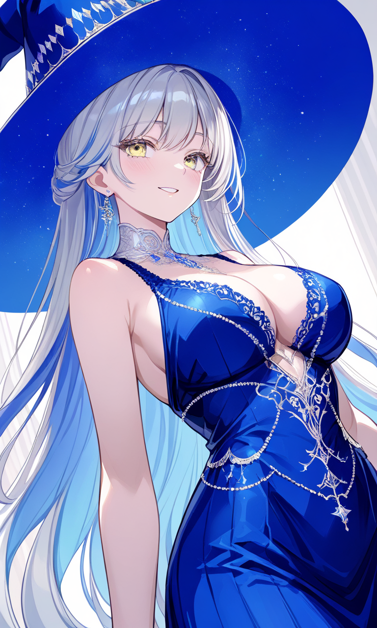 Θ容姿 整っている美人系統の顔立ち 腰近くまで伸びた蒼みがかったゆるく波打つ銀髪 黄金色の双眸、睫毛は長くやや垂れ目、厚みのある艶めく唇 白く滑らかできめ細かい素肌、最低限のしなやかな筋肉、細い腰のくびれ 張りと弾力のある豊満な乳房と綺麗なラインの大きな臀部 肉付の良い太腿からすらりと伸びた脚 全体的に男好きする凹凸のある体型