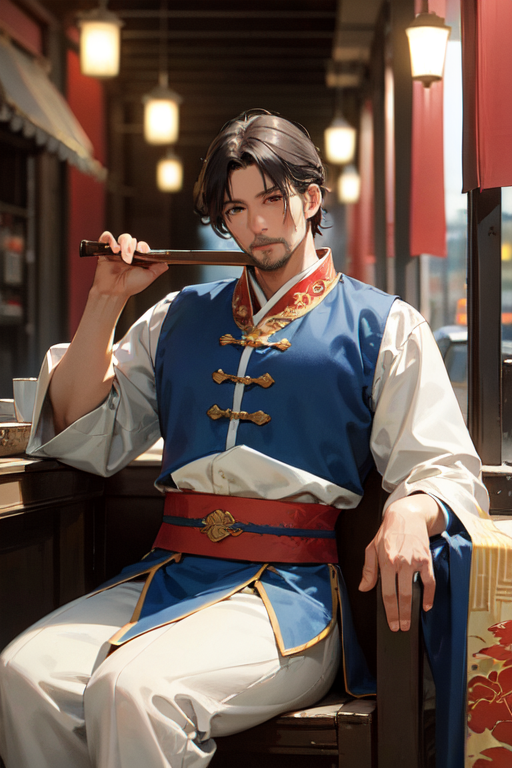 【容姿】 (人間体) 身長:191cm 体重:91kg 黒の瞳、黒の短髪。口ひげあごひげあり。 シェンヤン風の服上下。 体のラインが見えない服を着ることが多いが、筋骨隆々な戦士系の体つき (詳細は画像参照)
