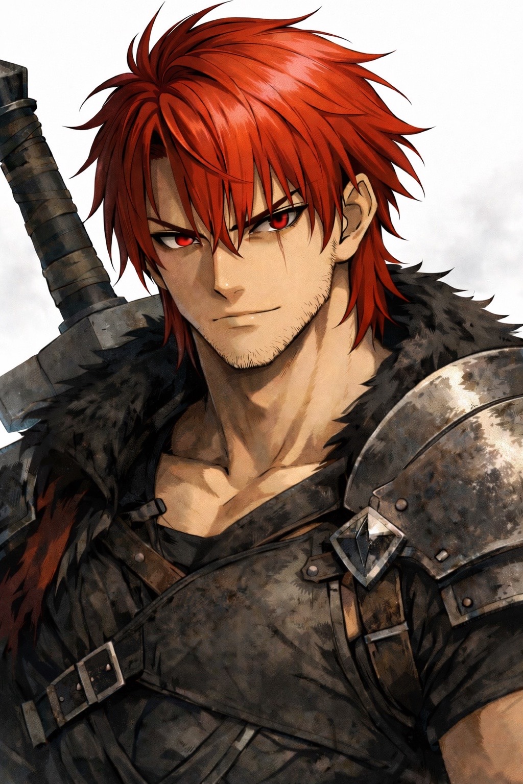 【容姿】 230cmの巨躯。 燃えるような赤髪と赤眼の戦士。 普通にしてればなかなか整った容姿に育ったろうに、 戦場育ちゆえにいかちめの顔立ちと戦傷が無数に。 左目を縦断するように刀傷。 平時は布服とローブくらい。武具なんてなかなか持ち歩きません。