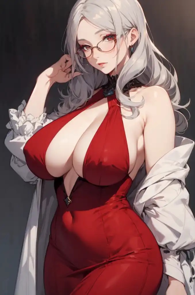 【容姿】 身長:172cm 体重:70kg BWH:108(K)/65/92 背中くらいまでのプラチナブロンドとアンバーレッドの瞳を持つ美女 髪の毛はウェーブがかかっていてふわふわとしているようにも見える 年齢に比して若々しいスタイルで、年齢の割にはお肌はすべすべだが、所々に年齢を感じさせるものもある。 (手指とか) 女性にしては高身長。肉付きが良いので、体重も重め。