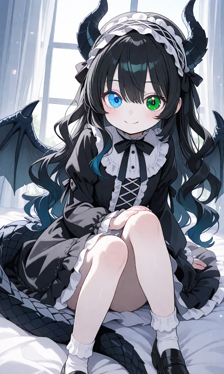 | 容姿 | 緩やかなウェーブの掛かった背中迄届く漆黒の髪/パッチリとした空色と蒼色のオッドアイ/直ぐ日に焼けそうな白い肌/見た目相応のスタイル |