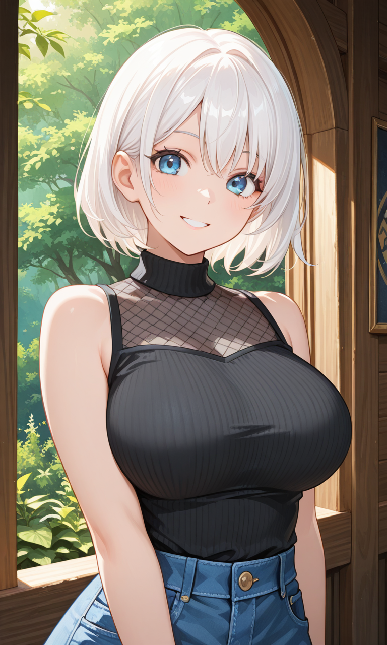 【容姿】 名前:リルア・ロックフェル 身長:158cm 体重:秘密 B90 W57 H84 白い髪のショートヘア、澄んだ青の瞳。 肌の色は白く、とても発育の良い体つき。 肉付きが良いだけではなく、冒険者としても活動している為よく鍛えられている。
