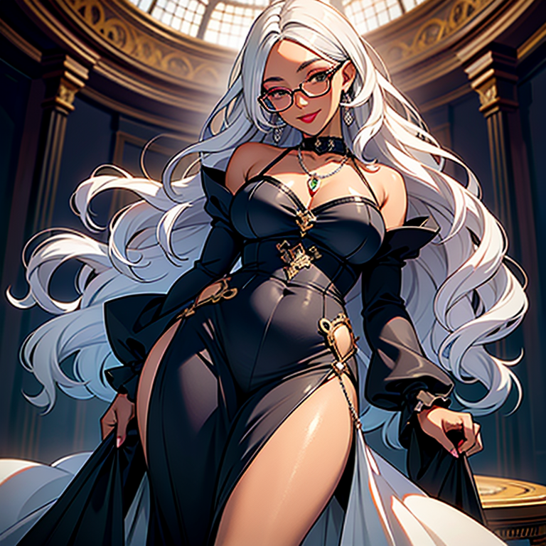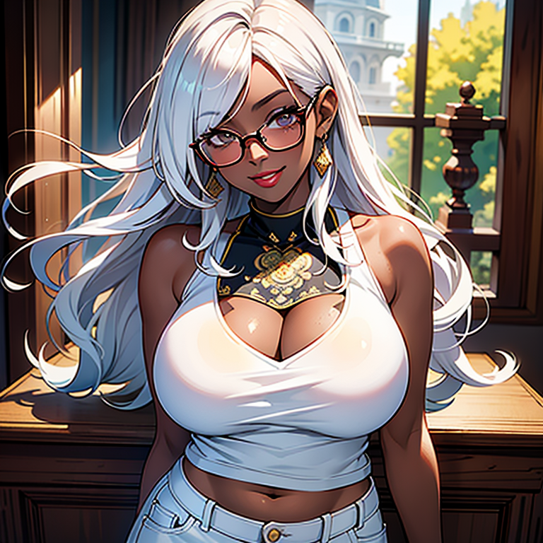 | 容姿 | 100H-65-99/褐色肌/豊満だが崩れていない/太めの唇/やや身長あり/銀髪/大ぶりの目/銀縁のメガネ |