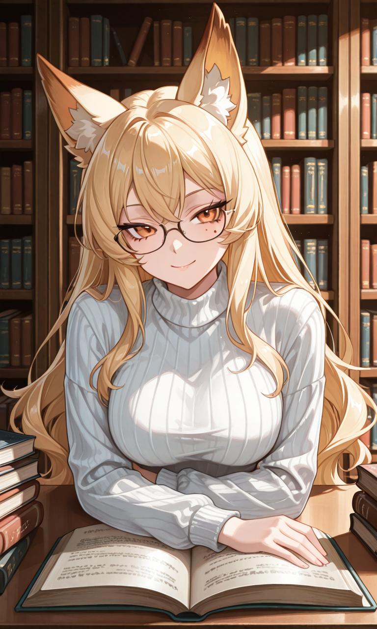 **容姿 ミレー。狐型の大きな耳。 ふんわりした金のロングヘア。 大きな丸眼鏡に、勝ち気そうな琥珀色の瞳。 白い肌。左目の下に泣きぼくろ。 常に余裕の漂う笑みを浮かべ、意味ありげな態度を取る。