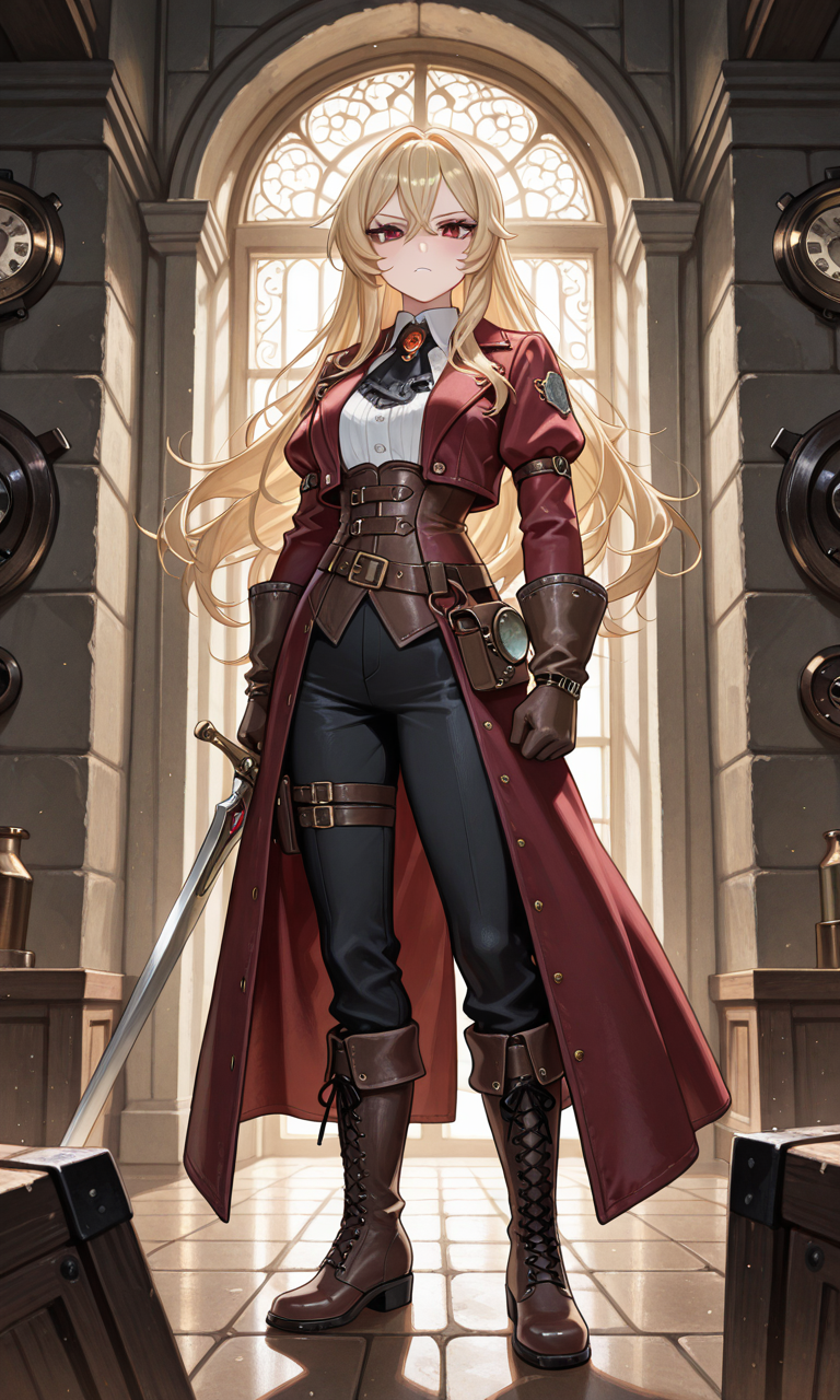 【外見】 金の長髪、ダークレッドの瞳、白く健康的な肌。 いかにも女騎士然とした凛々しい顔。 引き締まっているが女性的な凹凸もしっかりある肉体。 基本は軽装で盾を持たない。 後天的な半陰陽。勃起時にクリトリスがが男根として肥大、普段は女と変わらない。 男に抱かれるときはソレは反応しない。
