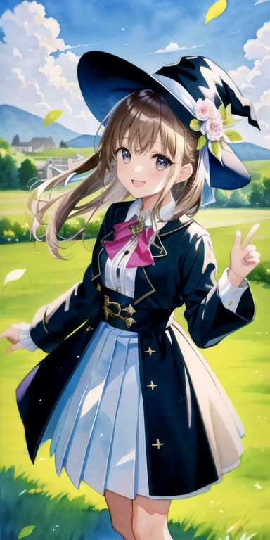 【容姿】 ふわりとした柔らかい亜麻色のロングヘアー 垂れ目がちな紫露草色の瞳 華奢で小柄な身体つき 普段着は少女らしいスカートやワンピース 学院登校時や仕事中は制服姿で、師匠から譲り受けた魔女帽子を愛用