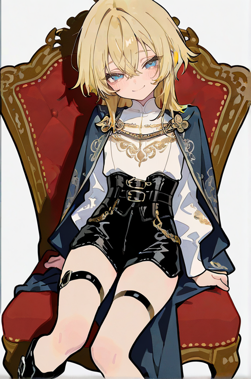 肩辺りで段の入った、肩甲骨までの長さをしたプラチナブロンドの髪。 眦の釣り上がった大きな猫目。虹彩は鮮やかなスカイブルー。 ふさふさの長い睫毛。 口角が上がり気味の桜色の唇。 透明感のあるもちもち白肌。若さゆえの瑞々しさ。 成長途中の体は少年とも少女とも付かない、柔らかさと華奢さが同居する。
