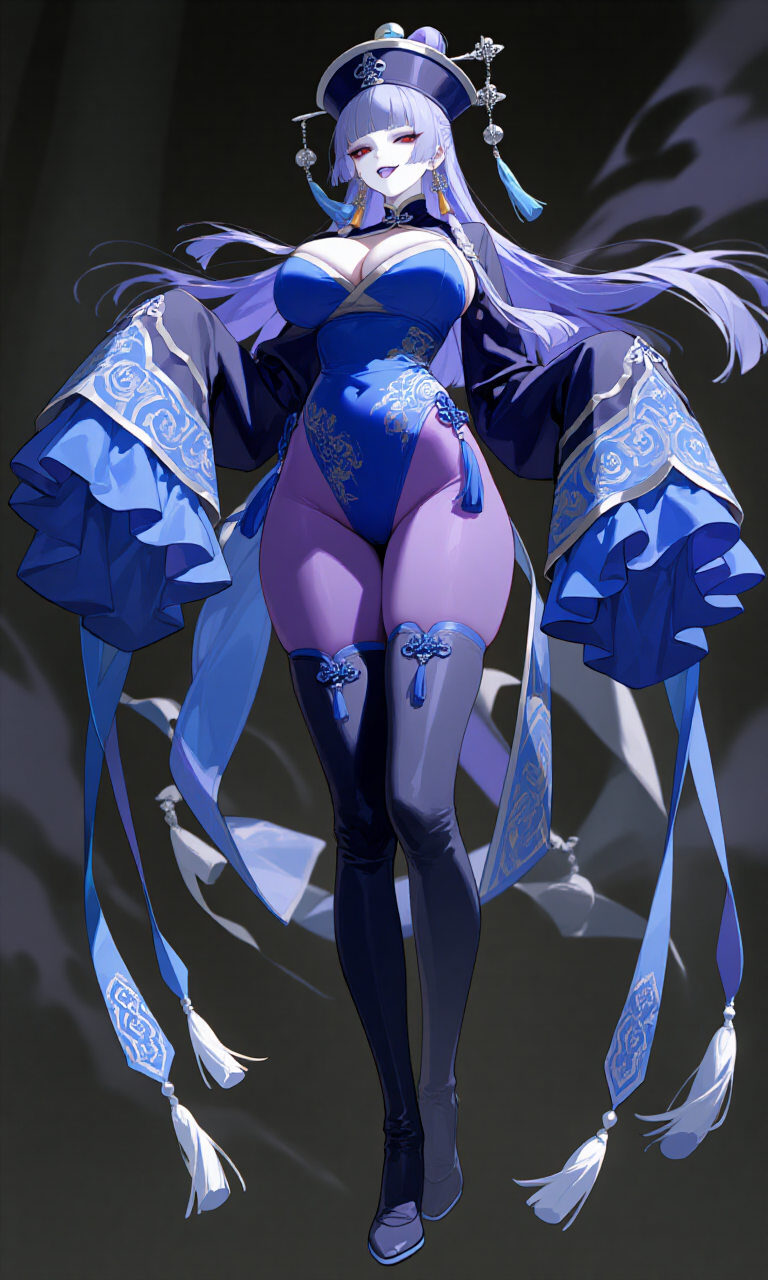 シェンヤン系の妖艶な女。貌はおしろいをはたいて白に塗られ、細い眼光から黄色の瞳がのぞく。眼の下には真っ赤な赤いライン。