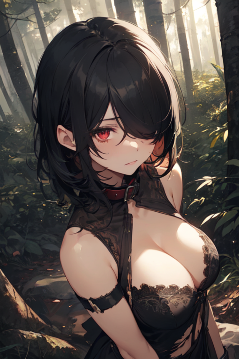 ◆容貌 身長156cm。華奢だが、くびれと丸みが明確な曲線。 柔らかな細い黒髪の目隠れ。 長い睫毛に縁取られた瞳は煌めく深紅でルビーに似た色合い。 顔立ちは整った綺麗な可憐さだが、成人にしてはやや幼い雰囲気。 胸は豊満。両手で収まりきらないほどのFカップ。 肢体は細く、しなやか。太腿や臀部は程々。肉付きは良好でもっちり。