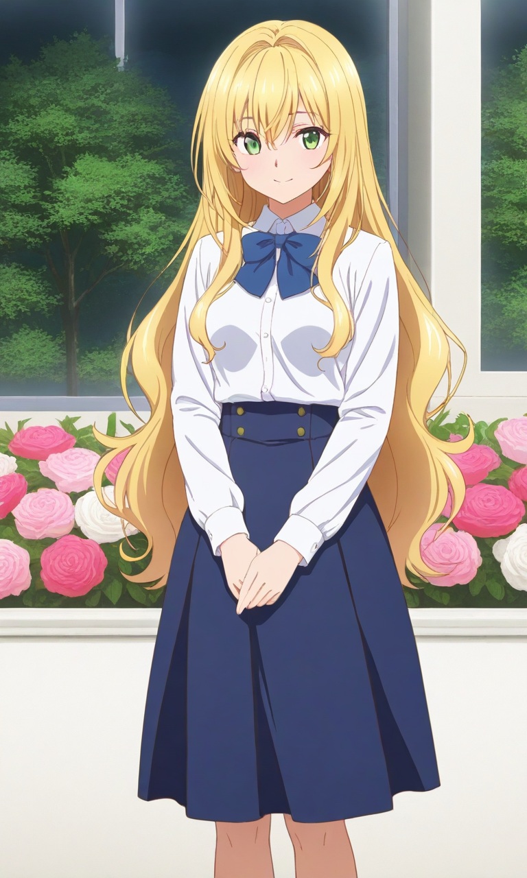 【外見】 腰まで届く長い金髪、透き通るような碧眼、身長150cm(人間形態時)、華奢だが鍛えられた筋肉質、小顔で整った鼻、 ふたなりでナニは小さめ 学生服が中心 私服は夏はワンピース、冬は厚手のコートなど 戦闘時は騎士風の鎧と貴族らしいドレスを組み合わせた独自の衣装を着用