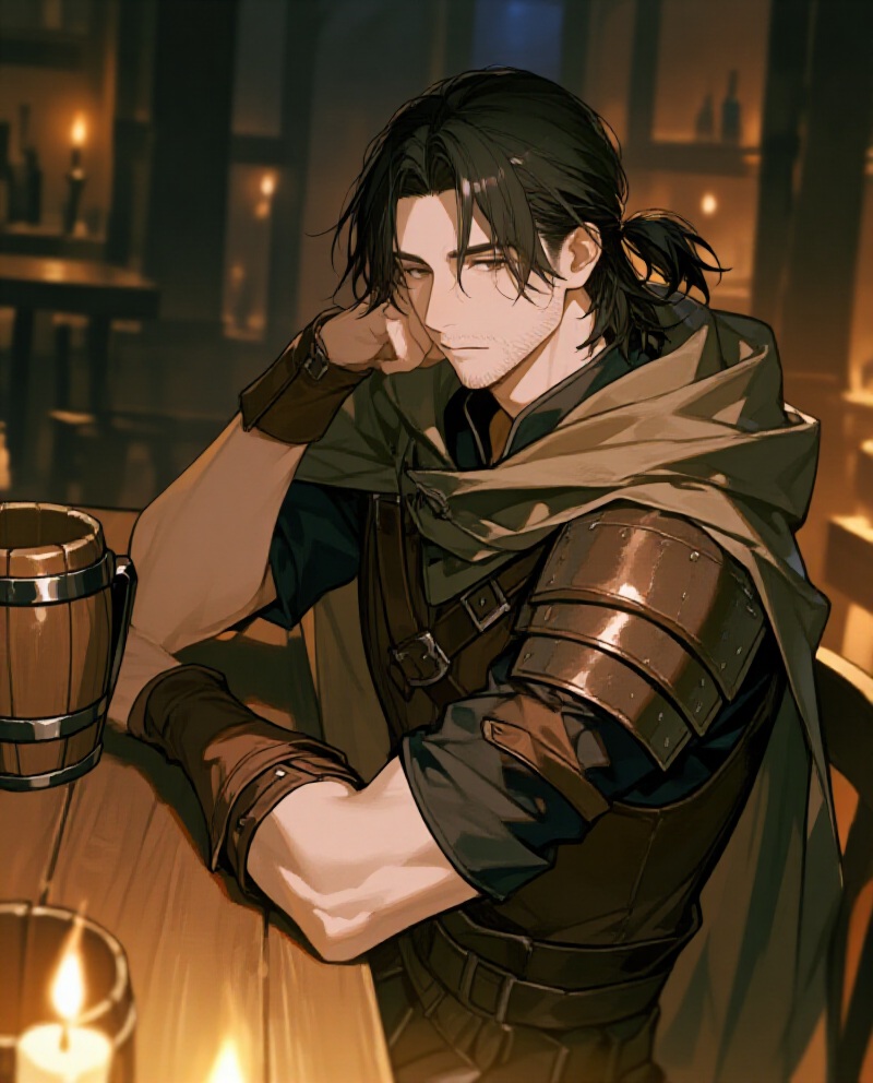 【概要】 ロンはニックネームで、フルネームはロナルド・ラスボーン。 気怠げな雰囲気を身に纏った中年手前の男性冒険者。 肩口より少し伸ばした黒髪は魔力タンクとしての役割もあって切らずに背中側でひとつに纏めている。 童顔を誤魔化すための無精髭を生やした顔には締まりの無い笑みを浮かべてへらへらと低姿勢を取ることも多く、それで相手が油断をしてくれれば儲け物と思っている狡猾な面があるのだが近年では油断してくれる相手が減っていてこの擬態の意味に自分でも疑問を覚えつつある。 戦闘スタイルとしては、器用貧乏一歩手前のオールマイティ。 重装での戦い方をすることこそほぼないものの、近接武器を持っての前衛から射撃武器や魔法を用いた後方支援まで卒なくこなす。 身に付けている技能の一つ一つを見れば二流程度ではあるが、それぞれを使い熟して組み合わせることで結果的には一流という扱いを受けている。 それなりに長く冒険者という行き方をして認められていることもあり、貴族や有力な商店などにもコネが幾つかあるなど、立ち回りの良さも評価の対象ではあるらしい。 当人としては、さっさと嫁でも貰って引退したいということもままあるとか。