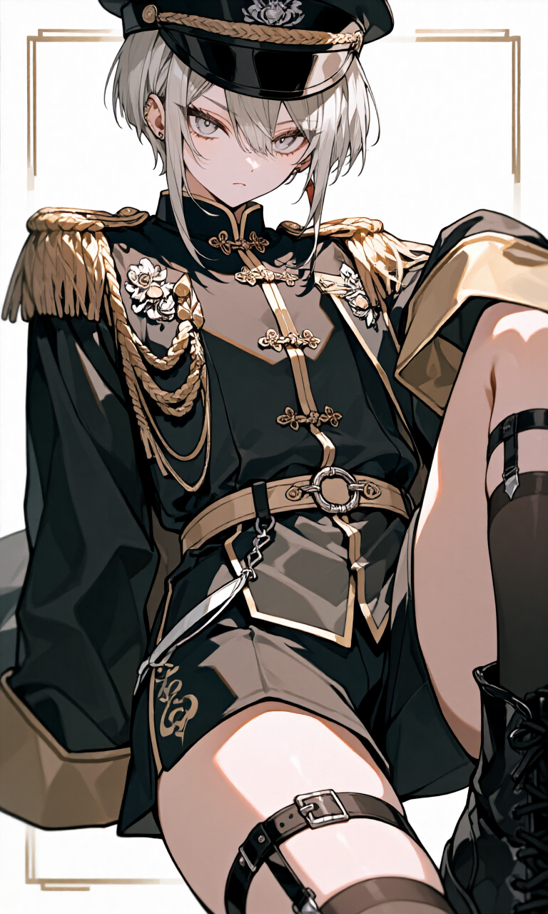 髪色は灰がかった白銀色。さらりとした軽さと冷たい質感を併せ持つ。 肌は色白。体格は細身で引き締まっており、一見すると少年のよう。 袖が長く手元は見えない制服に身を包み、 ショートパンツと左右非対称のアシンメトリーソックスガーターの装飾をつけている。 基本、女性らしさを消す様にサラシ着用。