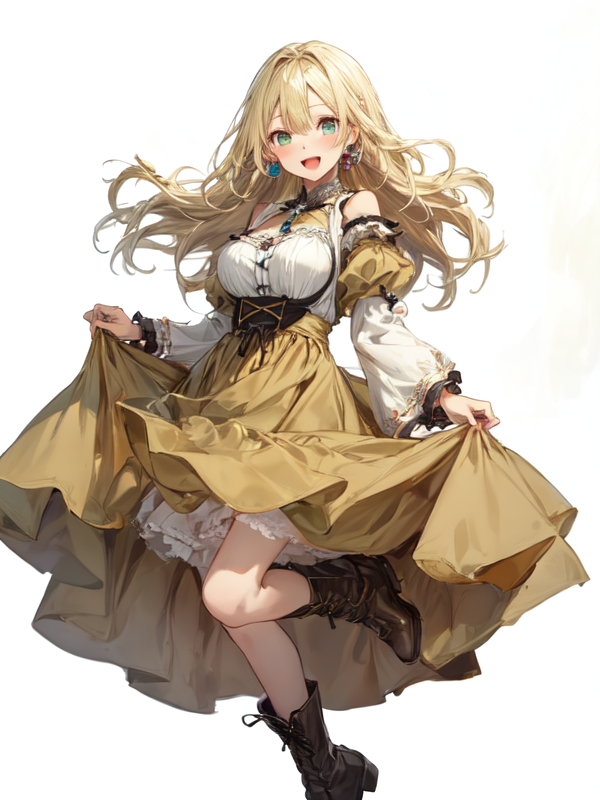 ◇村内での評判: ・明るく元気、誰にも物怖じせず話しかける。 ・村の“看板娘”のような存在で、旅人も笑顔にする。 ・村祭では歌い手・踊り手の筆頭で、笑顔の中心。