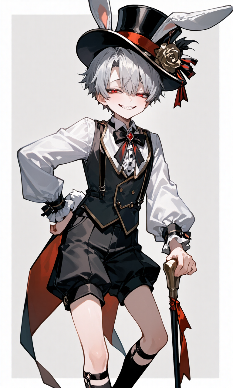 衣服はハイブラゼールの高級服飾店オーダーメイド品であり、主にウェストコート、ネクタイ、丈の短いズボン、白手袋、ガーターソックスを身に着ける。さらに、専用のリボン付きのハットをかぶり、飾り気のないステッキを携えていることが多い。