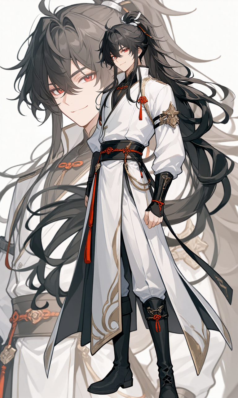 【外見】 180cm/75kg 長い黒髪に赤い瞳。鍛えられた靭やかな体。画像参照。