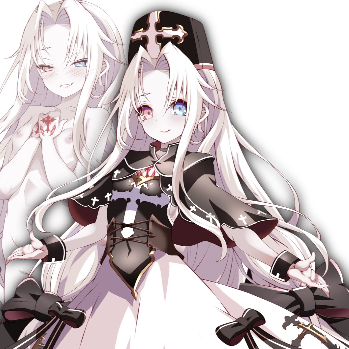ヤルダバオート信仰の巨大教派である聖バティスタ派騎士修道会――その創始者にして絶対的指導者。 年端もいかぬ少女の貌を持つ、優雅な佇まいと穏やかな声音を宿した童女。 深淵を覗くかのごとく相手の心を透かし見る紅と蒼の異色の瞳を持ち、 手の甲と胸元に宿る聖痕は傷を癒し、病魔を祓う奇跡をもたらすと言われている。