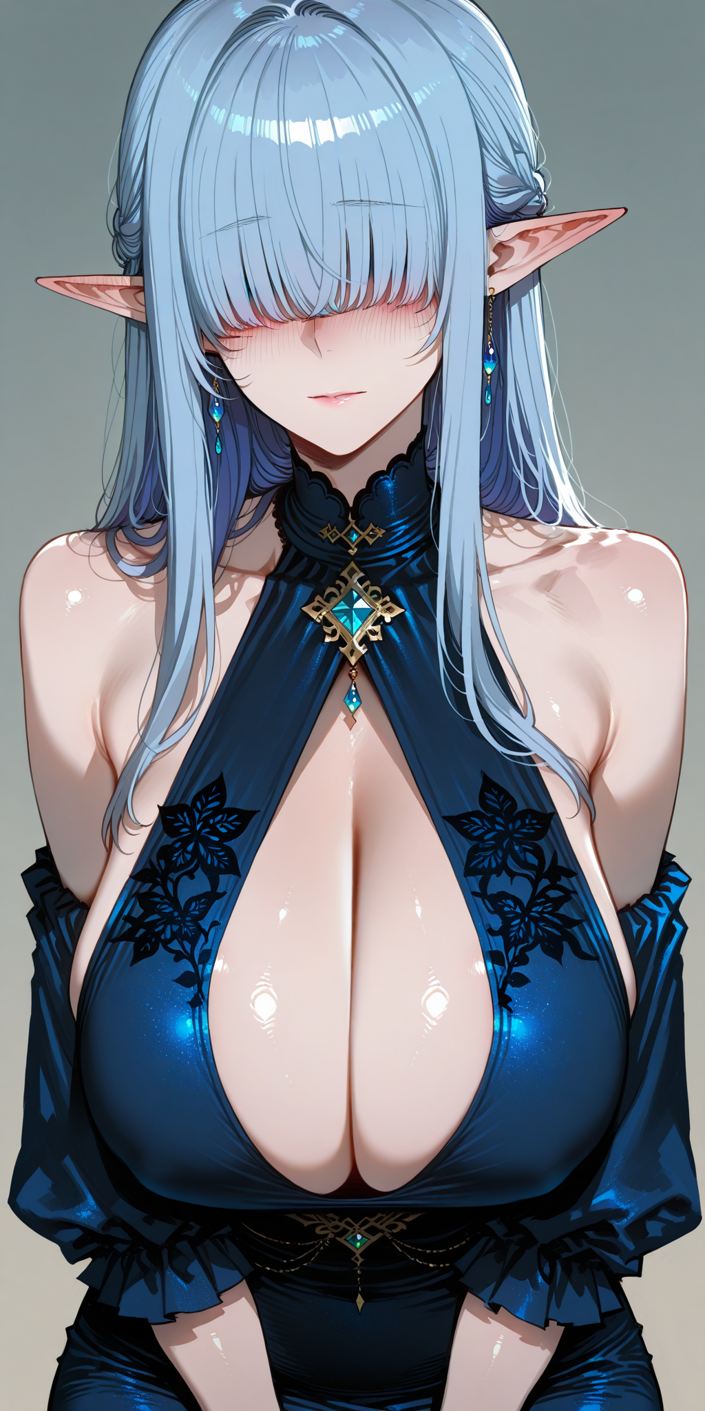 傷一つない白い肌とすらりと伸びた足。 非常に長い髪は後ろにも前にも伸びており。その瞳は見えない。 長い耳はエルフ族の母の血の証拠であり、ヴァルフレア侯爵家の第二婦人。