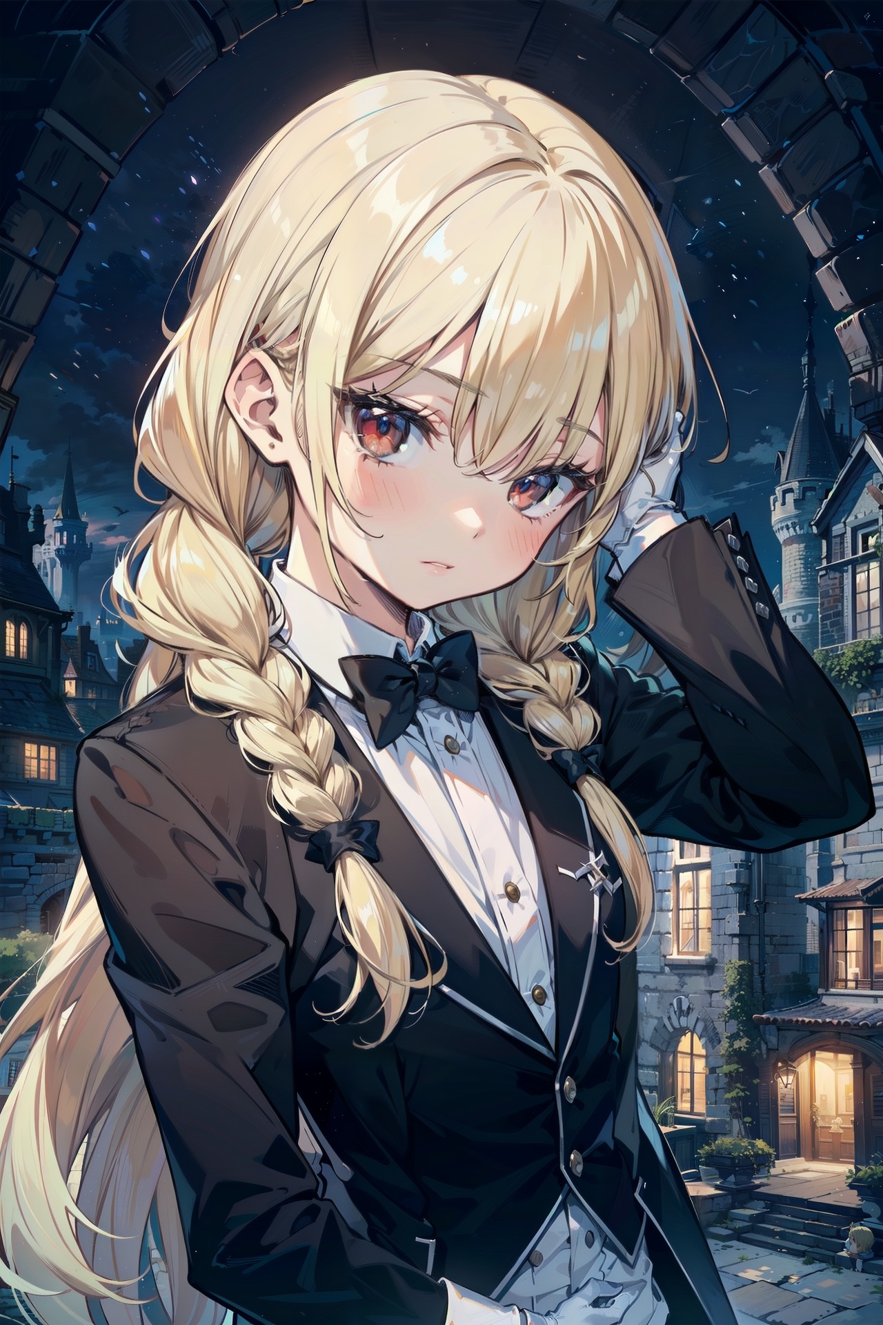 外見 長い金髪を三つ編みにした赤い瞳の少年執事、何処か色っぽさを漂わせている。