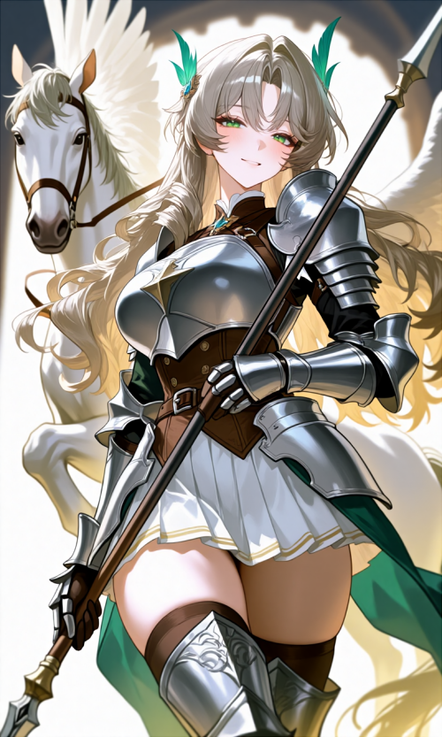 ■戦闘 天空からの高度急降下突撃、護衛、偵察が主で長槍で間合いを取りながらの制圧、投擲。 細身の剣に切り替えての接近戦、矢の迎撃、正確性重視としたスタンスは崩さない。