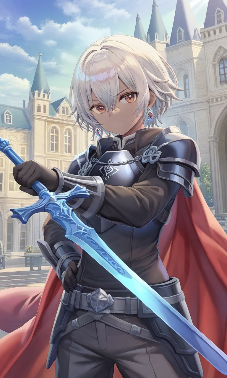[容姿] 銀色の手入れがされた短めの髪、冷たい印象の赤い瞳、褐色の肌 実践向きに鍛えられた体つき。