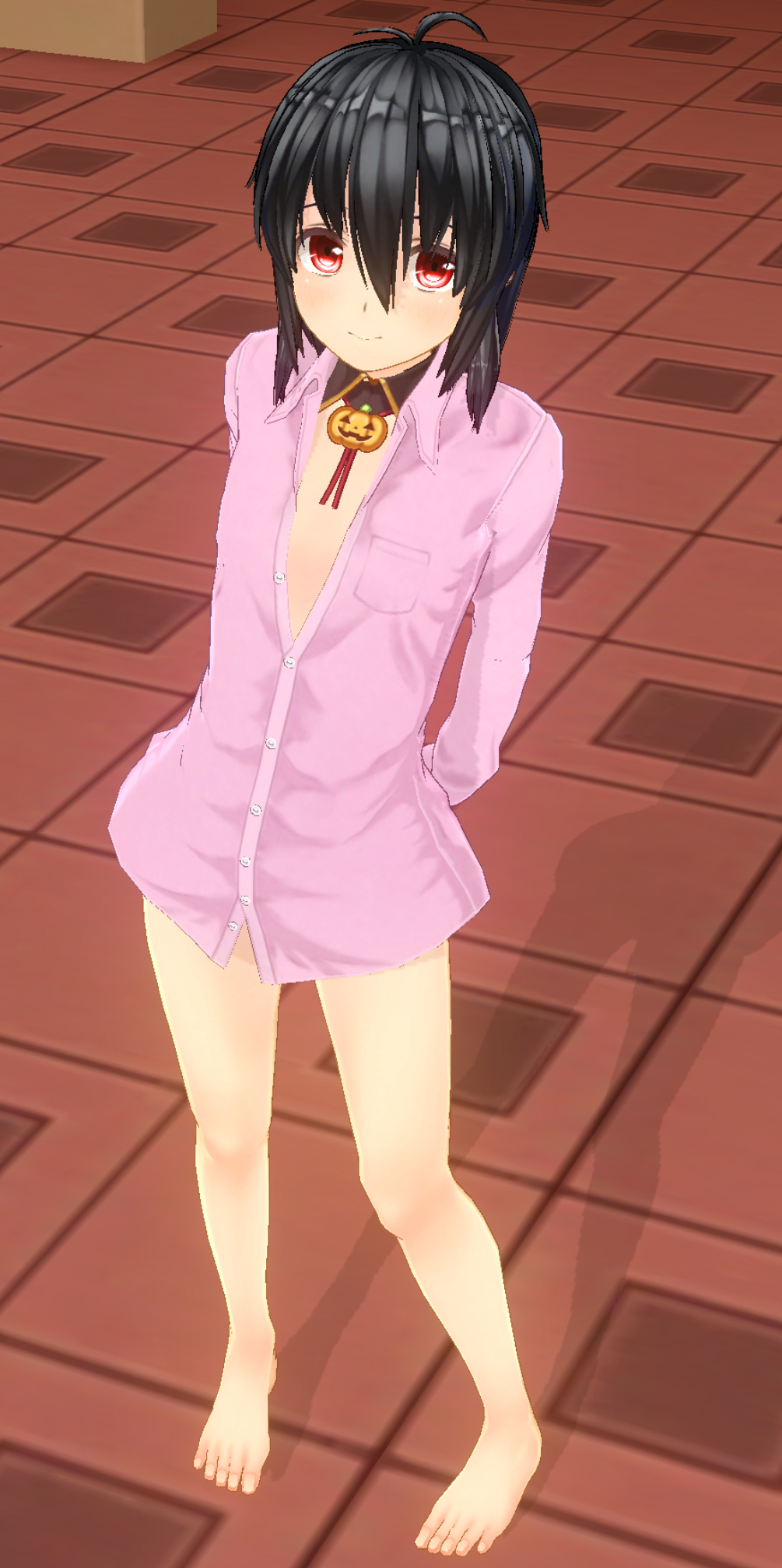・年齢 10才前後 ・身長 118センチ ・体重 23キロ ・裸にだぼだぼの薄紅のワイシャツ。 ワンピースやミニスカートのように下半身はかろうじて隠れるので、 気分によって短パンを履いていたり、何も履いてなかったり。