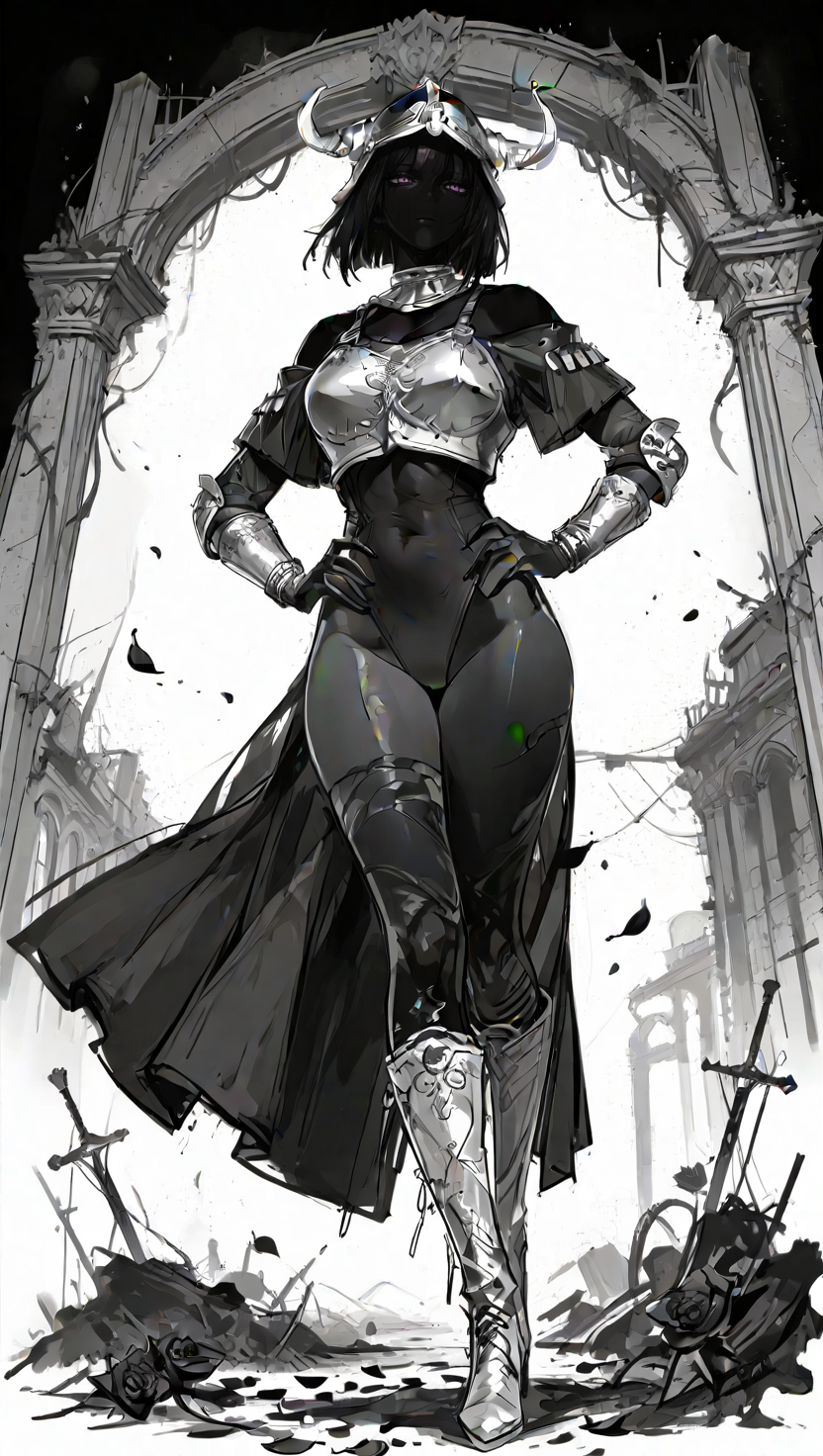 【装備・服装】 ハイレッグカットのレオタード。 兜・胸当て・肘当て・すね当て。
